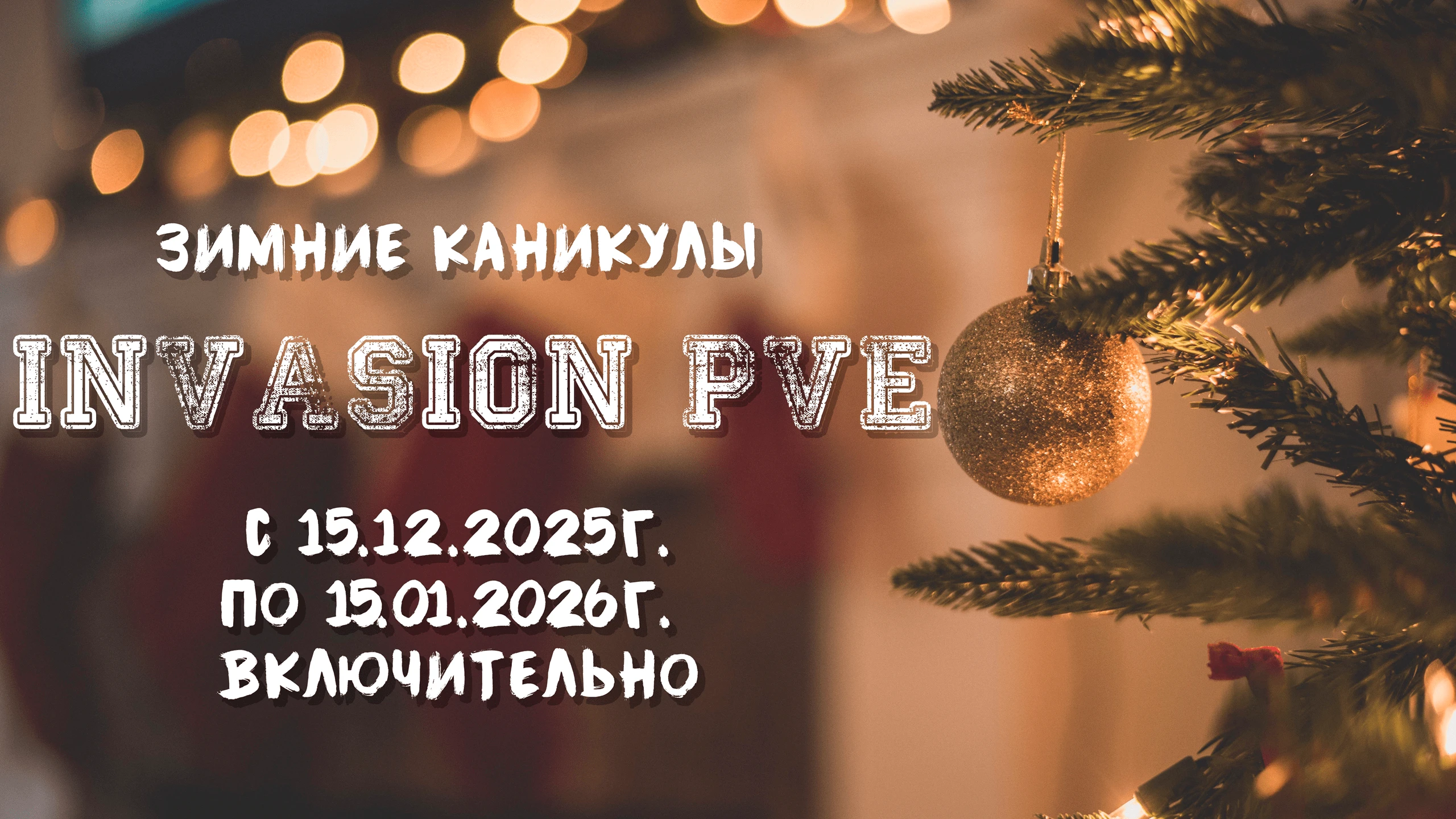 - В честь приближающегося праздника решили вас немного порадовать и поэтому объявляем скидки на нашем сайте https://invasionpve.shop в размере 10% с 30.12.2025г. 00:30 до 01.01.2026 23:59 по мск!